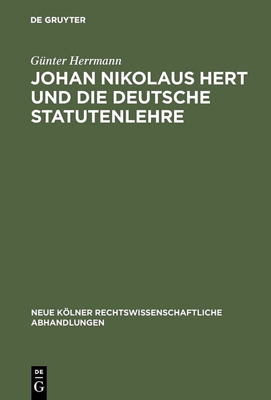 Dieser Titel, "Johan Nikolaus Hert und die deutsche Statutenlehre", ist eine wissenschaftliche Publikation, erschienen bei De Gruyter Brill. Ausführliche Beschreibung, Inhaltsverzeichnis und weitere Angaben finden Sie auf der Verlagswebsite: https://www.degruy...