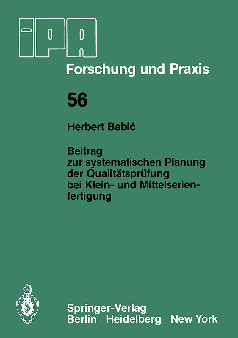 Inhalt 1 Zielsetzung und Vorgehensweise.- 2 Ausgangssituation.- 2.1 Stellung der Qualitätsprüfung im Unternehmen.- 2.2 Aufgaben und Ziele der Qualitätsprüfung.- 3 Festlegen einer allgemeinen Planungssystematik.- 3.1 Ablauf der planerischen Tätigkeiten.- 3.2 Ei...