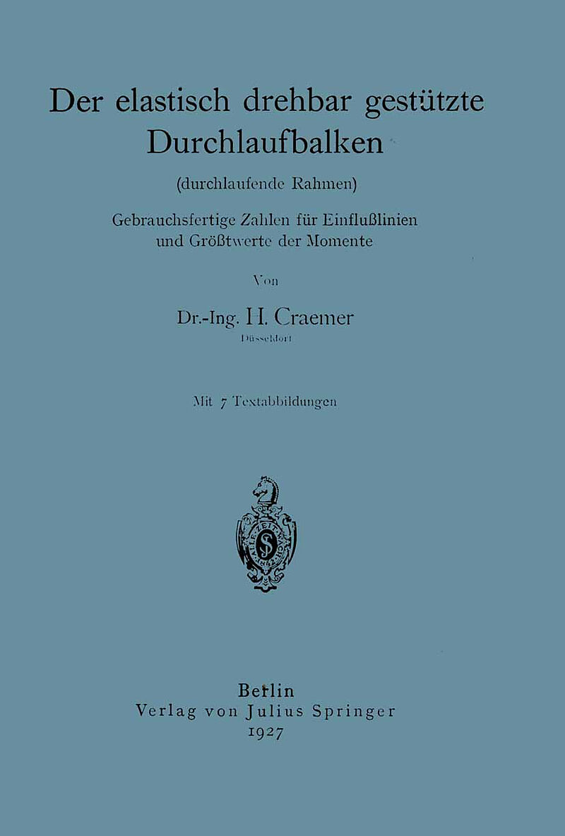 Der elastisch drehbar gestützte Durchlaufbalken (durchlaufende Rahmen). Gebrauchsfertige Zahlen für Einflußlinien und Größtwerte der Momente