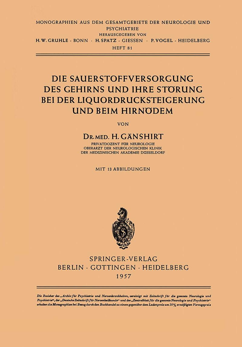 Inhalt I. Physiologie der Durchblutung und Sauerstoffversorgung des Gehirns.- 1. Blutsauerstoff.- 2. Capillarisierung und funktionell anatomische Gegebenheiten der Hirngefäße.- 3. Durchblutungsregulation.- 4. Der Zellsauerstoff im Gehirn und das Modell des Kro...