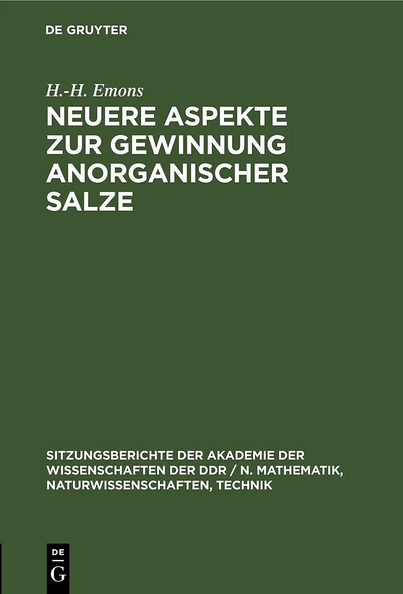 Dieser Titel, "Neuere Aspekte zur Gewinnung anorganischer Salze", ist eine wissenschaftliche Publikation, erschienen bei De Gruyter Brill. Ausführliche Beschreibung, Inhaltsverzeichnis und weitere Angaben finden Sie auf der Verlagswebsite: https://www.degruyte...