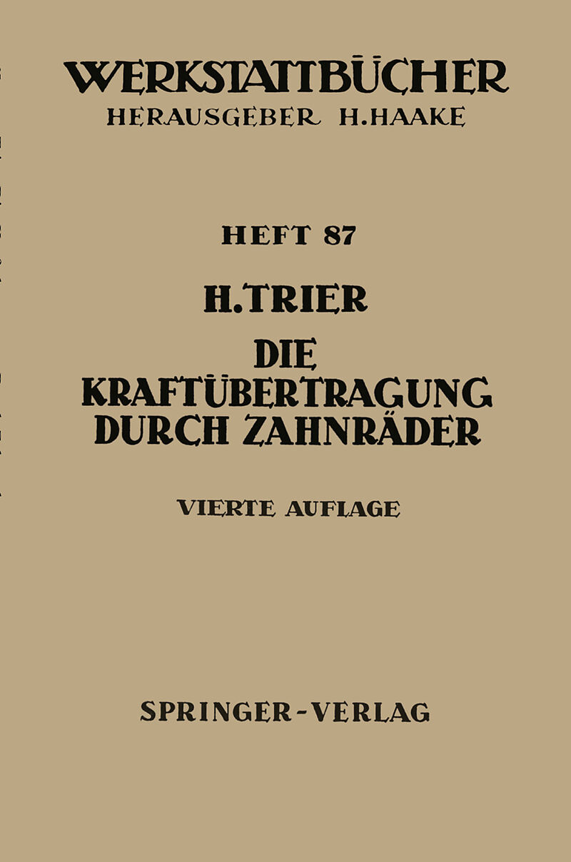 Inhalt I. Betriebsverhältnisse.- 1. Gleiten der Zahnflanken S..- 2. Abnutzung der Zahnflanken S..- 3. Reibung beim Wälzgleiten, Wälzreibung der Stirnräderflanken S..- 4. Reibung in den Lagern S..- 5. Wirkungsgrad S..- 6. Reibung beim Schraubgleiten, Schraubrei...