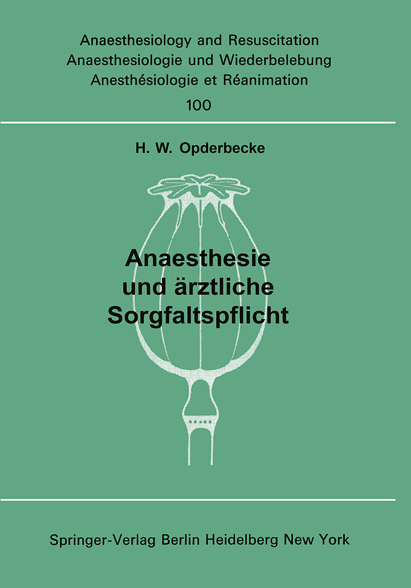 Inhalt 1 Einleitung.- 2 Allgemeiner Teil.- 2.1 Aufgaben und Verantwortung des Anaesthesisten.- 2.2 Beziehungen und Zusammenarbeit zwischen Operateur und Anaesthesist.- 2.3 Statistik des Anaesthesierisikos.- 2.4 Die Aufklärungspflicht des Anaesthesisten.- 2.5 D...