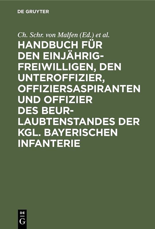 Dieser Titel, "Handbuch für den Einjährig-Freiwilligen, den Unteroffizier, Offiziersaspiranten und Offizier des Beurlaubtenstandes der kgl. bayerischen Infanterie", ist eine wissenschaftliche Publikation, erschienen bei De Gruyter Brill. Ausführliche Beschreib...