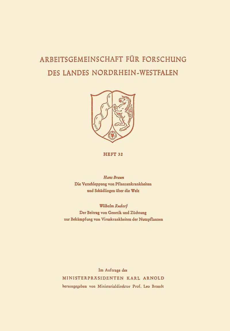 Inhalt Die Verschleppung von Pflanzenkrankheiten und Schädlingen über die Welt.- Diskussion.- Der Beitrag von Genetik und Züchtung zur Bekämpfung von Viruskrankheiten der Nutzpflanzen.- Diskussion.