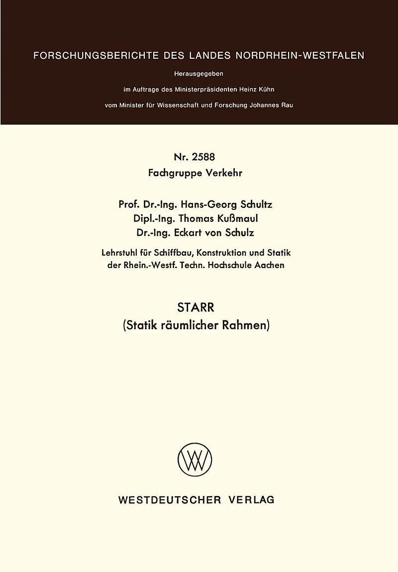 Inhalt 1. Einleitung.- 2. Beschreibung des Programmsystems STARR.- 3. Beispielrechnungen.- 4. Berechnung des Schubleichters im Beladungsfall Biegung.- Bildanhang.- Nomenklatur.- Anhang: Das Rechenverfahren.- 1. Allgemeines.- 2. Das Deformationsverfahren.- 2.1....