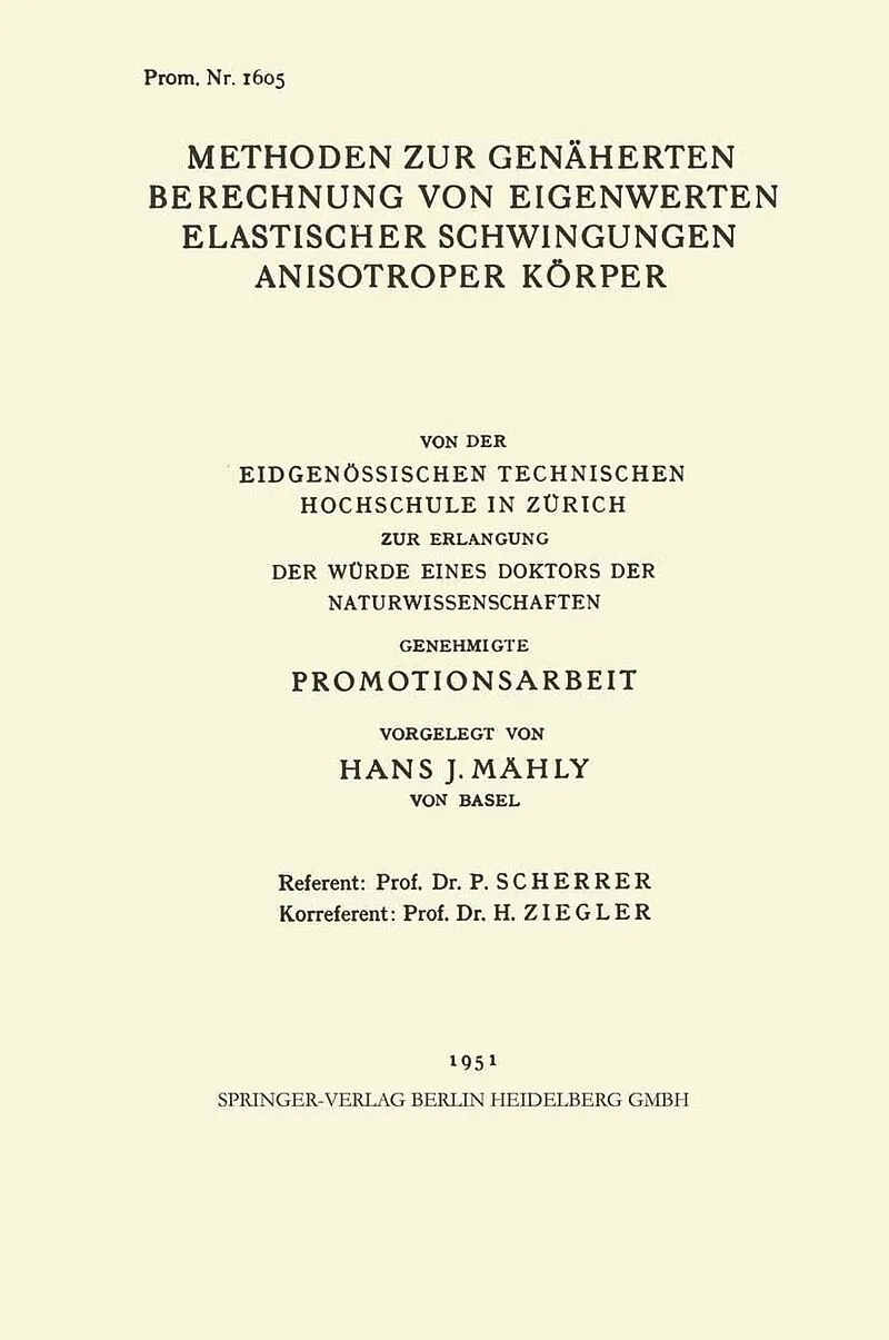 In der vorliegenden Arbeit soll der Versuch gemacht werden, die wichtigsten Methoden zur genäherten Berechnung von Eigenwerten auf den Fall von Schwingungen anisotroper Körper zu übertragen und im Anschluß an diese Methoden einige neue Formeln herzuleiten, die...