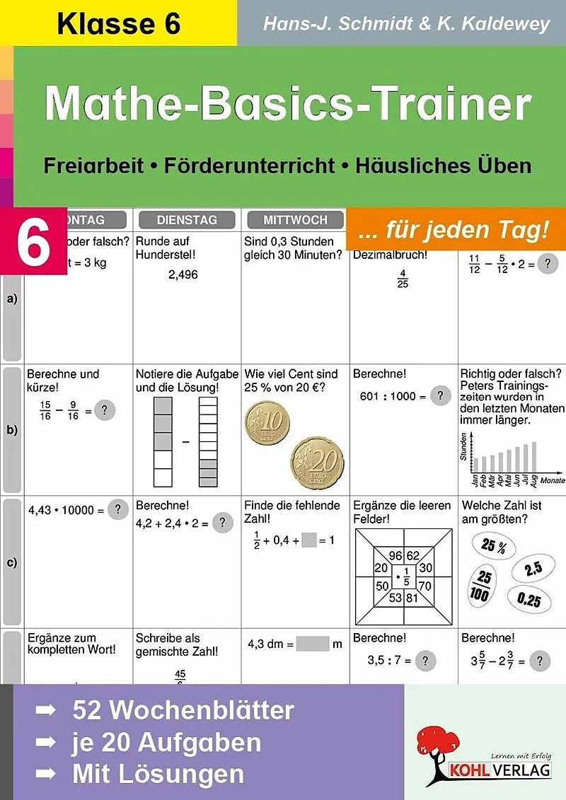 Unser Arbeitsheft für Mathematik in der Sekundarstufe Klasse 6 bietet vielfältige Übungsaufgaben zur Wiederholung, Stärkung und Festigung grundlegender mathematischer Kompetenzen. Der Band umfasst 52 Wochenblätter mit jeweils 20 Aufgaben (4 pro Wochentag), ide...