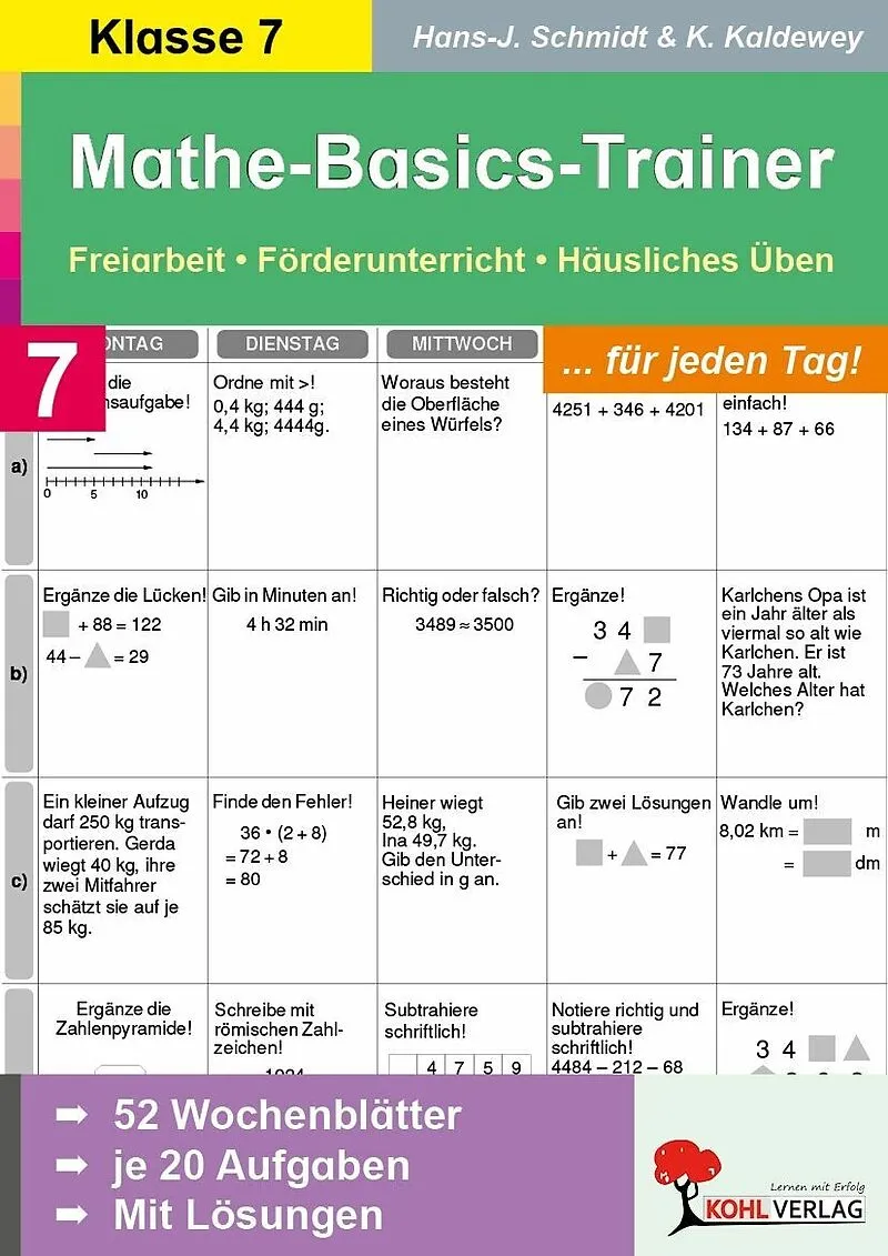 Unser Arbeitsheft für Mathematik in der Sekundarstufe Klasse 7 bietet eine umfangreiche Auswahl an Aufgaben, die speziell darauf ausgerichtet sind, Grundkompetenzen wie Geometrie, Gleichungen, Prozentrechnung, Terme und Zinsrechnung zu wiederholen, zu stärken ...