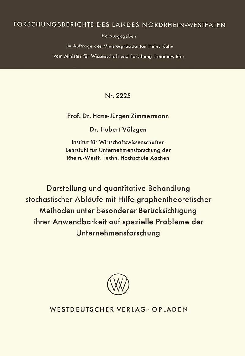 Inhalt 1. Einleitung.- 2. Die Graphentheorie als Grundlage der Netzplantechnik.- 2.1 Graphische Darstellung linearer Gleichungssysteme.- 2.2 Verfahren zur Reduktion von Flußgraphen.- 3. Netzwerkverfahren zur Analyse stochastischer Abläufe.- 3.1 Ansätze von Eis...