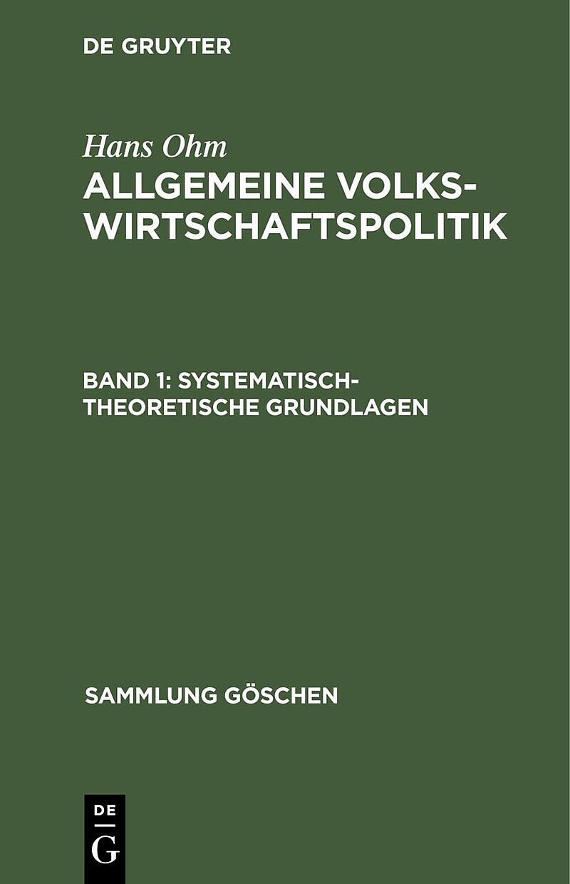 Frontmatter -- Inhalt -- 1. Objekt, Methode und Aufgaben der Lehre von der Allgemeinen Volkswirtschaftspolitik -- 2. Die Objektivität der wissenschaftlichen "wirtschaftspolitischen Aussage -- 3. Die Träger der praktischen Wirtschaftspolitik -- 4. Die Situation...