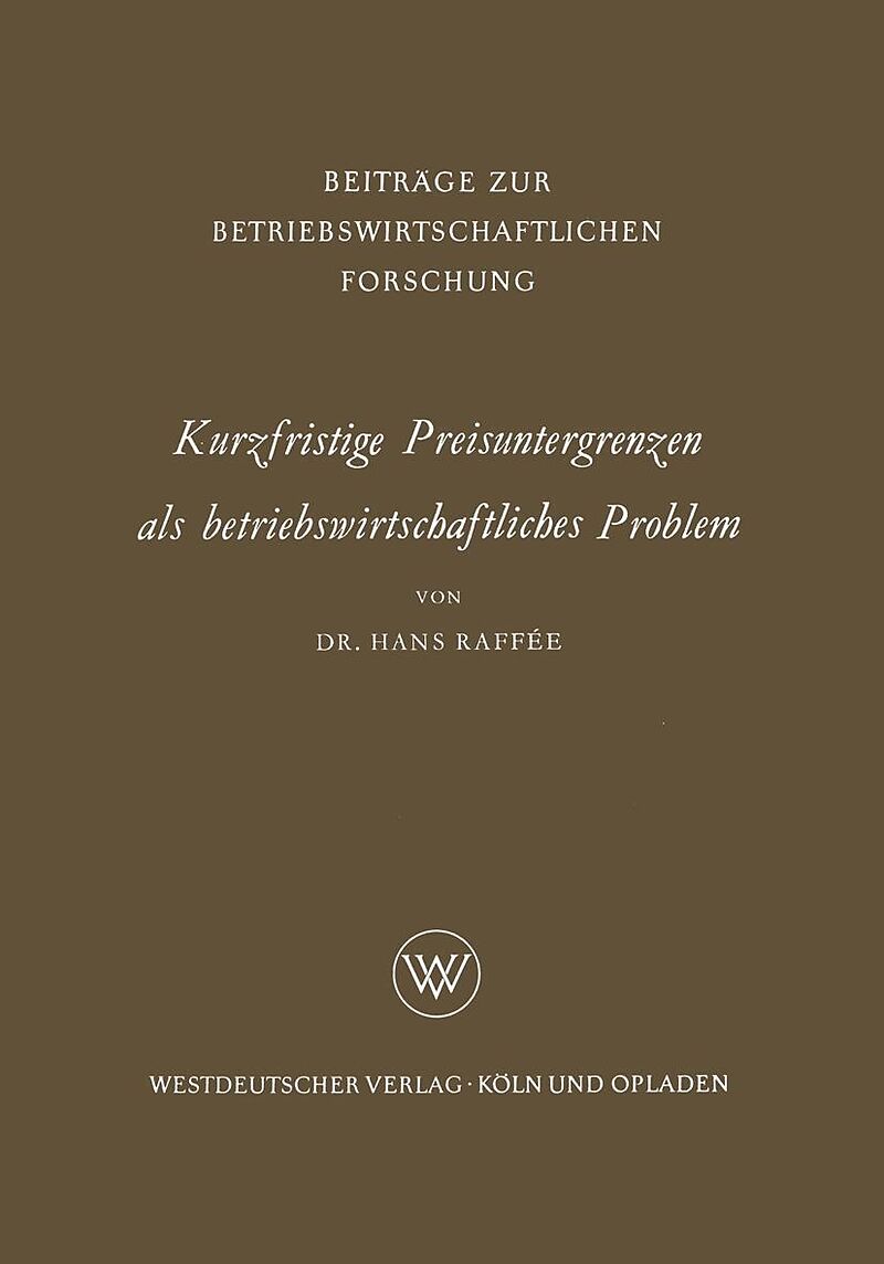 Inhalt A. Einleitung.- I. Problemstellung.- II. Abgrenzung des Themas.- III. Gang der Untersuchung.- B. Begriffliche Grundlegung.- I. Die Begriffe Preis und Preisuntergrenzen.- II. Der Kostenbegriff und die im Rahmen der Untersuchung wichtigsten Kostengliederu...