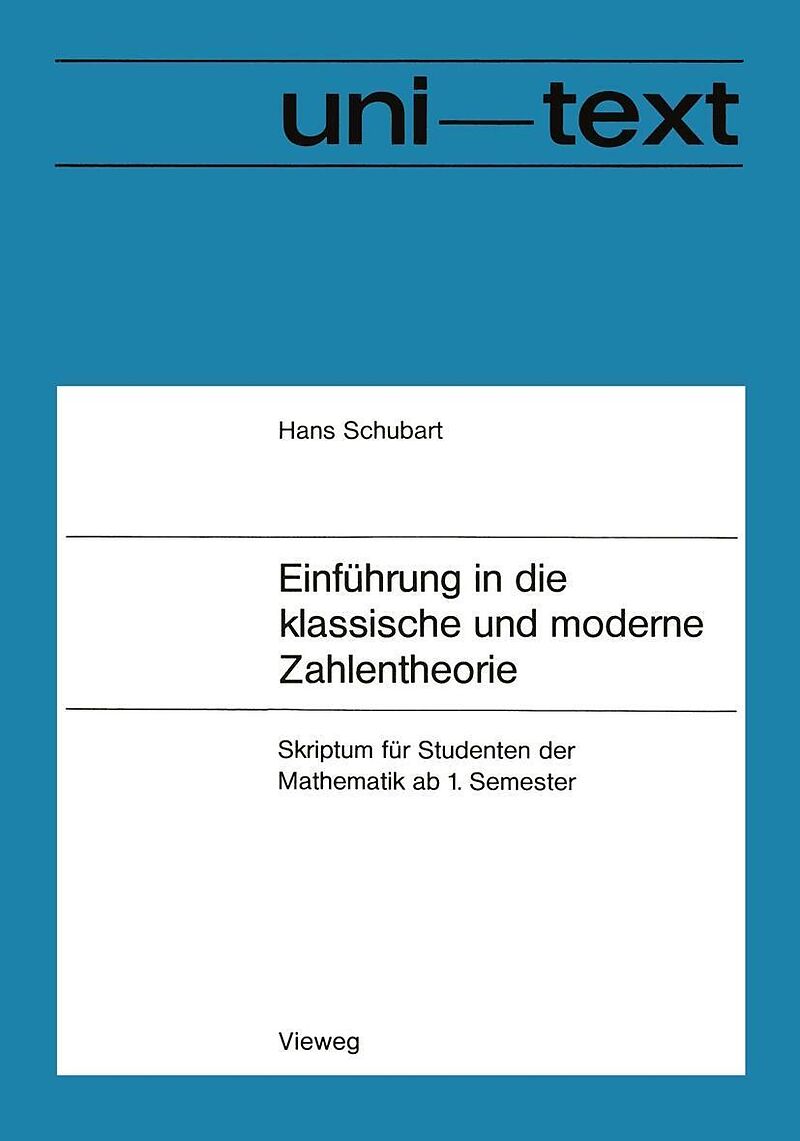 Inhalt 1. Vorbereitungen.- 1.1. Einige Grundlagen.- 1.2. Teilbarkeit der ganzen rationalen Zahlen.- 1.3. Restklassen und Teilersummen.- 1.4. Zur Positionsschreibweise der reellen Zahlen.- 1.5. Elementare Beweise einiger Sätze der Analytischen Zahlentheorie.- 2...
