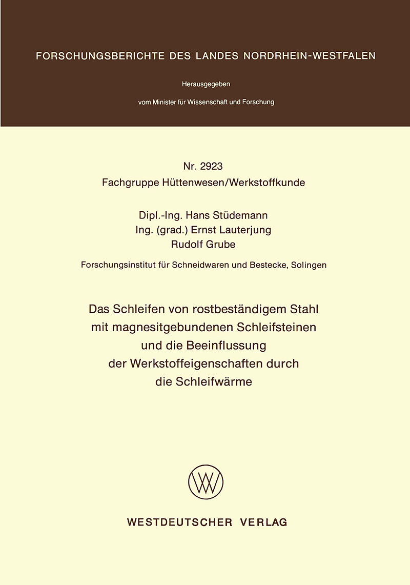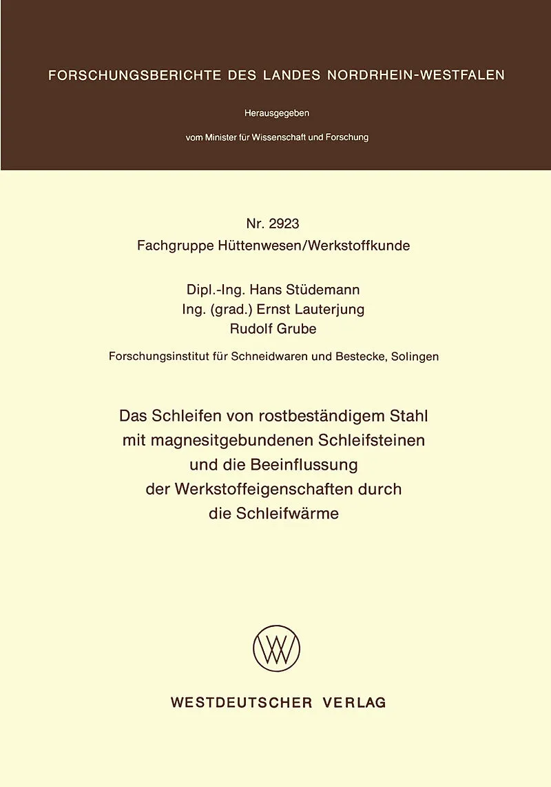 Inhalt 1. Einleitung.- 2. Grundstoffe der Schleifsteinbindung.- 2.1 Technisches Magnesiumoxid (Magnesit).- 2.2 Technisches Magnesiumchlorid (Lauge).- 2.3 Vorgänge bei der Steinbildung.- 3. Eigenschaften der abgebundenen Proben.- 3.1 Zusammensetzung.- 3.2 Gewic...