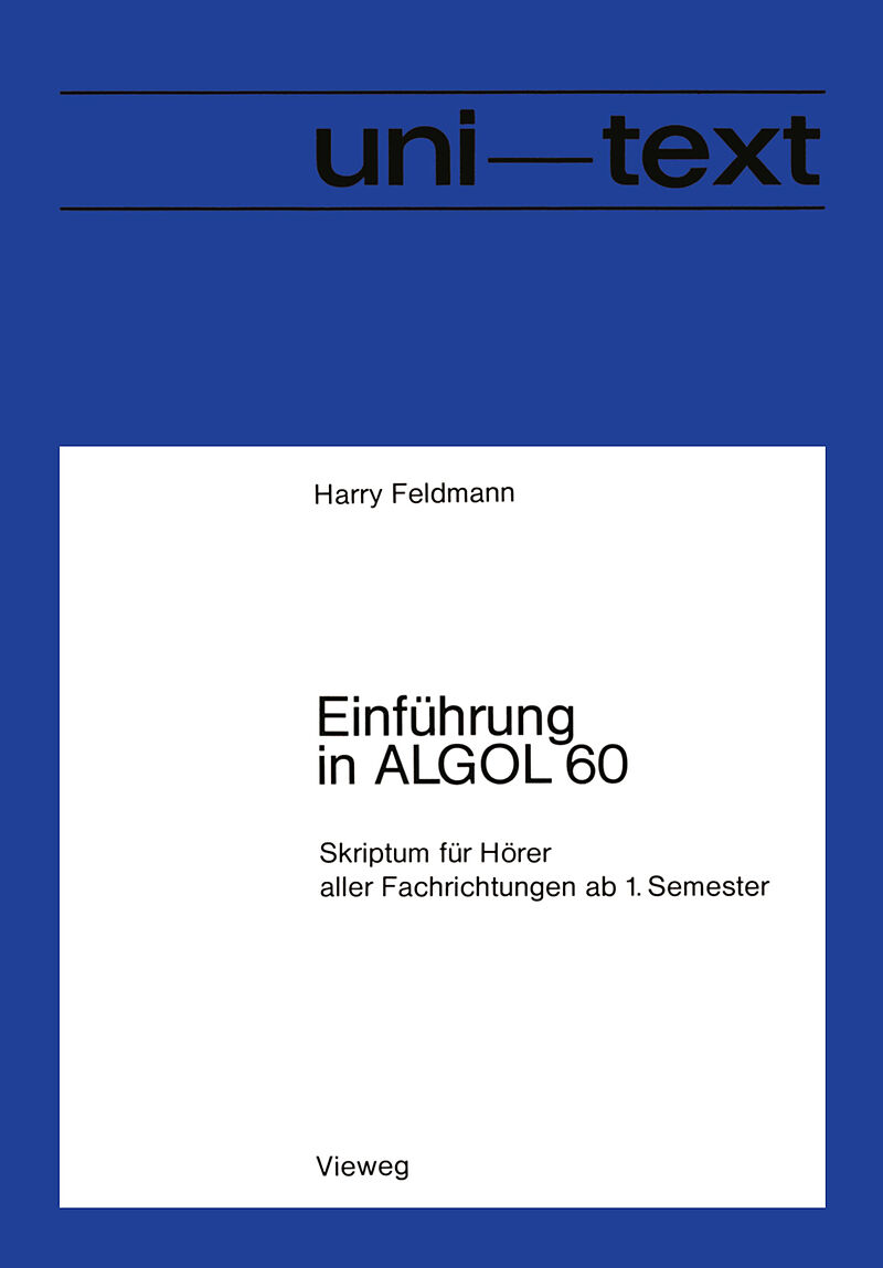 Inhalt 1 Einleitung.- 1.1 Struktur von Rechenanlagen.- 1.2 Darstellung von Algorithmen durch Flußdiagramme.- 1.3 Beispiele.- 2 ALGOL-6O-Auszug.- 2.1 Zeichenvorrat und Grammatik-Notation.- 2.2 Vorzeichenlose Zahlen.- 2.3 Bezeichnungen.- 2.4 Vereinfachte arithme...
