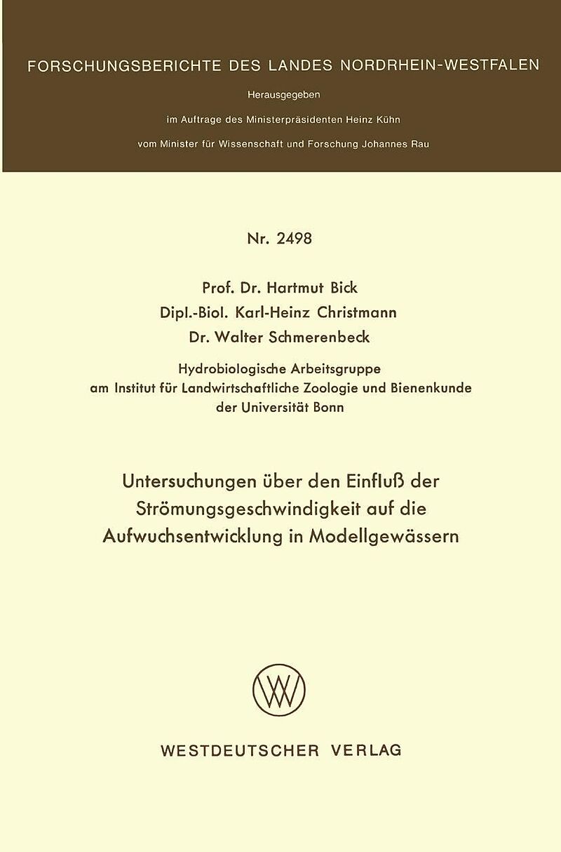 Inhalt 1. Einleitung.- 2. Methode.- 2.1. Die Modellfließgewässer.- 2.2. Die Erfassung der Organismenbesiedlung.- 2.3. Die Erfassung chemischer Parameter.- 2.4. Die Strömungsmessung mittels Heißfilm-Anemometer.- 3. Untersuchungsergebnisse.- 3.1. Vorbemerkungen....