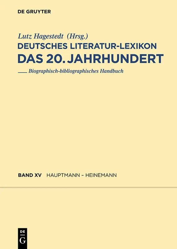 The Dictionary of German Literature. The 20th Century contains authors writing in German whose main work was created in the 20th century. Volume 15 includes articles on Gerhart Hauptmann, Marlen Haushofer, Christoph Hein und Helmut Heißenbüttel. In line with ...