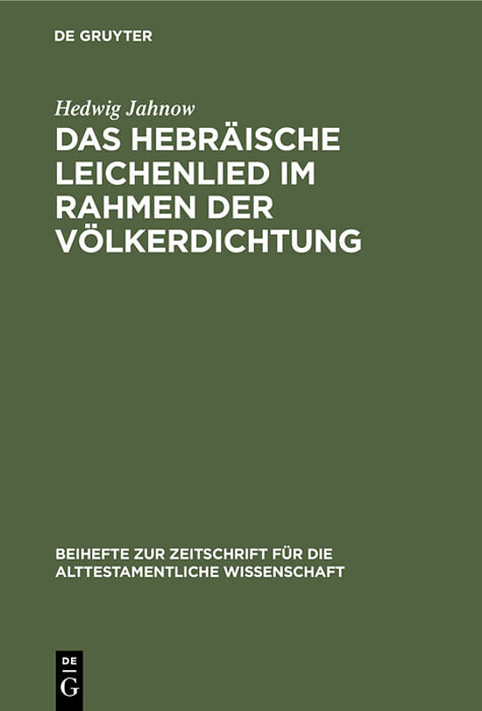 Dieser Titel, "Das hebräische Leichenlied im Rahmen der Völkerdichtung", ist eine wissenschaftliche Publikation, erschienen bei De Gruyter Brill. Ausführliche Beschreibung, Inhaltsverzeichnis und weitere Angaben finden Sie auf der Verlagswebsite: https://www.d...