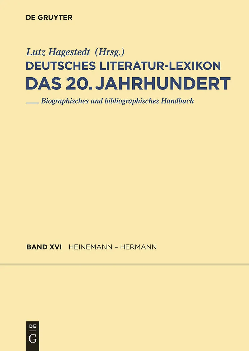 The Dictionary of German Literature. The 20th Century contains authors writing in German whose main work was created in the 20th century. Volume 16 includes articles on Jutta Heinrich, Hans-Jürgen Heise, Helmut Heißenbüttel, Bernt von Heiseler, Eckhard Hensch...