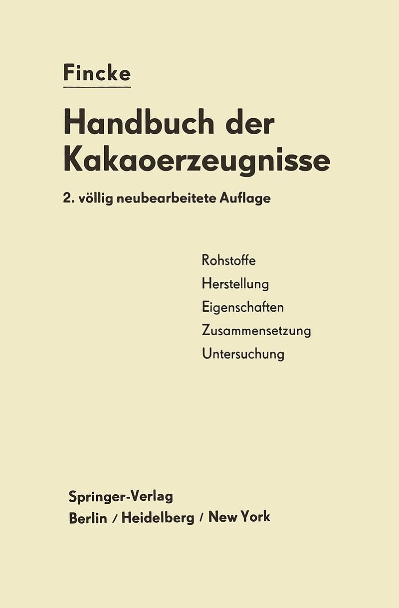 Inhalt Inhaltsübersicht.- I. Geschichte des Kakaos.- A. Vorzeit und Entdeckungsalter.- B. Einführung des Kakaos und der Schokolade im 16. und 17. Jahrhundert in Europa.- C. Die Zeit von 1700 bis 1850.- D. Entstehung einer kakaoverarbeitenden Industrie nach 185...
