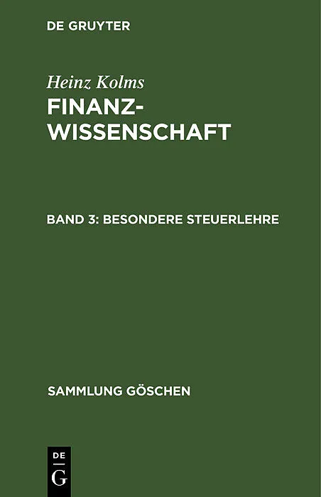 Frontmatter -- Inhaltsverzeichnis -- Kapitel VII. Besondere Steuerlehre -- § 1. Einkommensteuern -- § 2. Vermögensteuern -- § 3. Erbschaftsteuern -- § 4. Ertragsteuern -- § 5. Zuwachssteuern -- § 6. Verkehrsteuern -- § 7. Verbrauchsteuern und Zölle -- § 8. Kom...