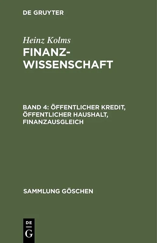 Frontmatter -- Inhaltsverzeichnis -- Kapitel VIII. Öffentlicher Kredit -- Kapitel IX. öffentlicher Haushalt -- Kapitel X. Finanzausgleich -- Literaturhinweise -- Namensregister -- Sachregister -- NOTIZEN