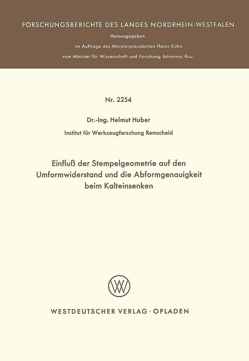 Inhalt 1. Theoretische Grundlagen.- 1.1 Einsenkverfahren.- 1.2 Metallkundliche Grundlagen.- 1.3 Rechnerische Grundlagen.- 2. Problemstellung.- 3. Untersuchungsprogramm.- 3.1 Ausführung der Einsenkstempel.- 3.2 Ausführung der Matrizen.- 3.3 Versuchsdurchführung...