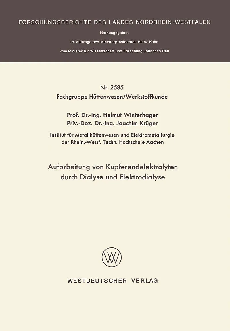 Inhalt 1. Einleitung.- 2. Schrifttumsübersicht.- 2.1 Dialyse von Elektrolyten.- 2.2 Elektrodialyse von Elektrolyten.- 3. Membranen und ihre Eigenschaften.- 4. Stofftransport durch Membranen.- 4.1 Ableitung der Nernst-Planck'schen Gleichung.- 4- 4.2 Ableitung p...