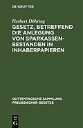 Dieser Titel, "Gesetz, betreffend die Anlegung von Sparkassenbestanden in Inhaberpapieren", ist eine wissenschaftliche Publikation, erschienen bei De Gruyter Brill. Ausführliche Beschreibung, Inhaltsverzeichnis und weitere Angaben finden Sie auf der Verlagsweb...