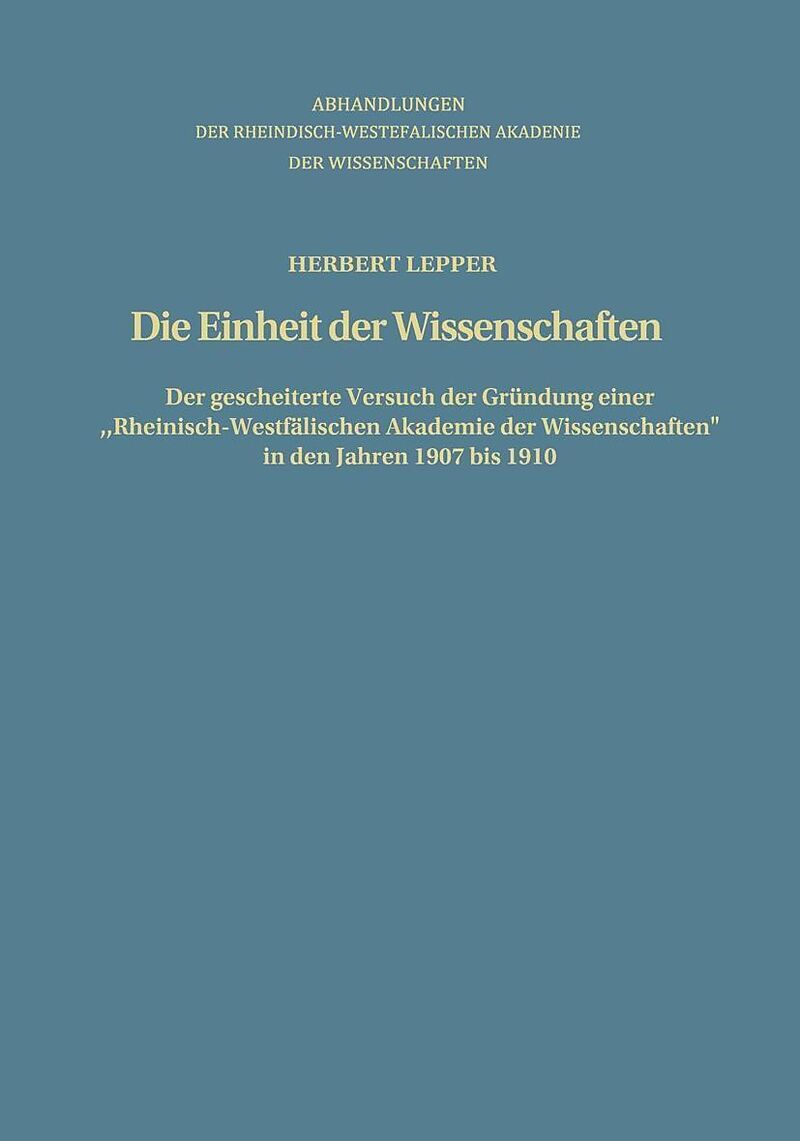 Inhalt Darstellung.- 1. Die Idee: Einheit der Wissenschaften.- 2. Die zwei Alternativen: Düsseldorf Bonn.- 3. Die Entscheidung: Rheinische Akademie der Wissenschaften in Bonn.- 4. Die Krisis: Das Ringen um das staatliche Plazet.- 5. Das Scheitern des Akademiep...