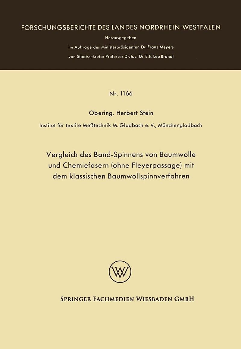 Inhalt 2. Entwicklung der Spinnverfahren.- 3. Aufgabenstellung.- 4. Verwendete Prüfgeräte.- 5. Überprüfte Bandspinnmaschinen mit Kannen- und Wickelvorlage.- 6. Durchgeführte Spinnversuche.- 7. Beurteilung der Garngleichmäßigkeit nach Längenvariationskurven.- 8...