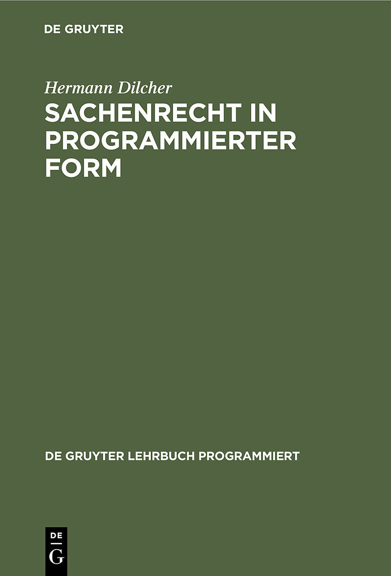 Dieser Titel, "Sachenrecht in programmierter Form", ist eine wissenschaftliche Publikation, erschienen bei De Gruyter Brill. Ausführliche Beschreibung, Inhaltsverzeichnis und weitere Angaben finden Sie auf der Verlagswebsite: https://www.degruyterbrill.com/isb...