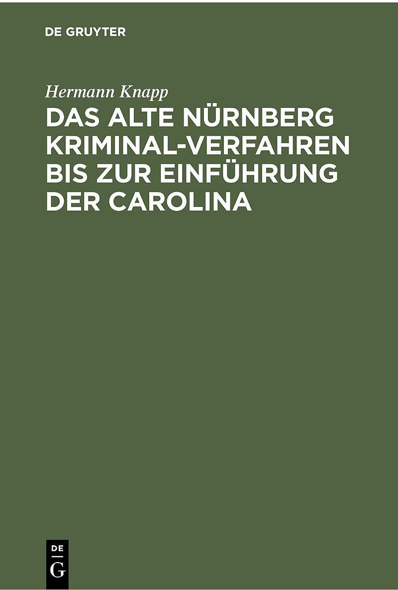Dieser Titel, "Das Alte Nürnberg Kriminal-Verfahren bis zur Einführung der Carolina", ist eine wissenschaftliche Publikation, erschienen bei De Gruyter Brill. Ausführliche Beschreibung, Inhaltsverzeichnis und weitere Angaben finden Sie auf der Verlagswebsite: ...