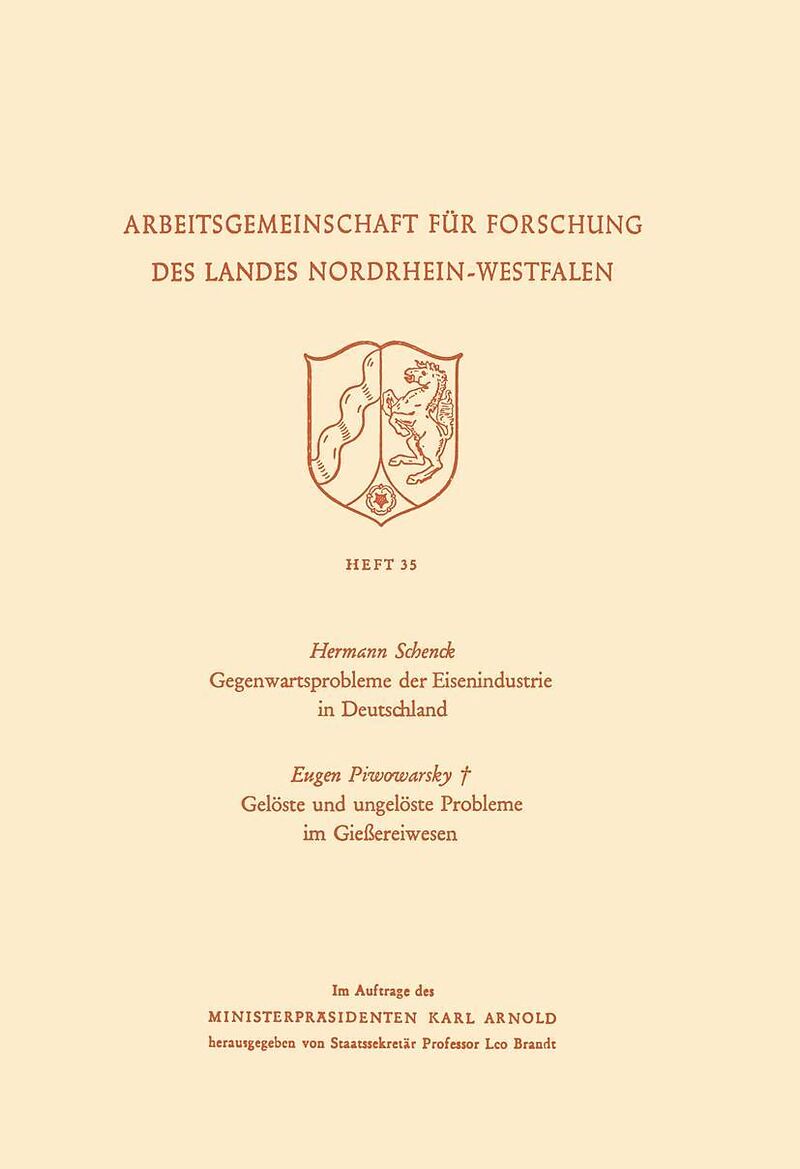 InhaltGegenwartsprobleme der Eisenindustrie in Deutschland.- Diskussionsbeiträge.- Gelöste und ungelöste Probleme im Gießereiwesen.