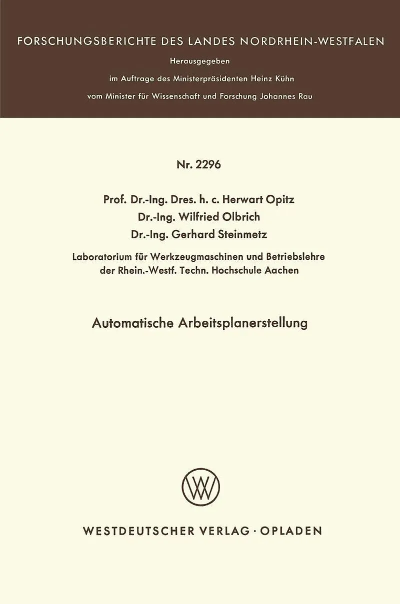 Inhalt 1. Einleitung.- 1.1 Situation der Arbeitsplanerstellung im Unternehmen.- 1.2 Zielsetzung der Forschungsarbeit.- 2. Voraussetzungen zur automatischen Arbeitsplanerstellung.- 2.1 Datenerfassung.- 2.2 Materialauswahl.- 2.3 Ermittlung des Arbeitsablaufes.- ...