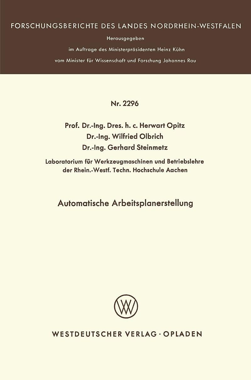 Inhalt 1. Einleitung.- 1.1 Situation der Arbeitsplanerstellung im Unternehmen.- 1.2 Zielsetzung der Forschungsarbeit.- 2. Voraussetzungen zur automatischen Arbeitsplanerstellung.- 2.1 Datenerfassung.- 2.2 Materialauswahl.- 2.3 Ermittlung des Arbeitsablaufes.- ...