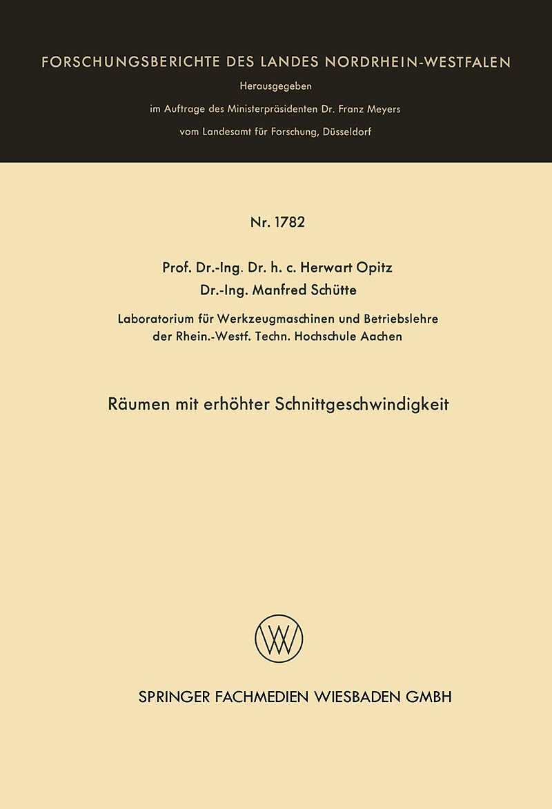 Der Bericht schließt an die Forschungsberichte Nr. 426, 928 und 1356 des Landes Nordrhein-Westfalen an und enthält die Ergebnisse systematischer Untersu chungen der Haupteinflußgrößen für das Räumen mit erhöhter Schnittgeschwin digkeit. 1. 1 Einführung Die Ent...