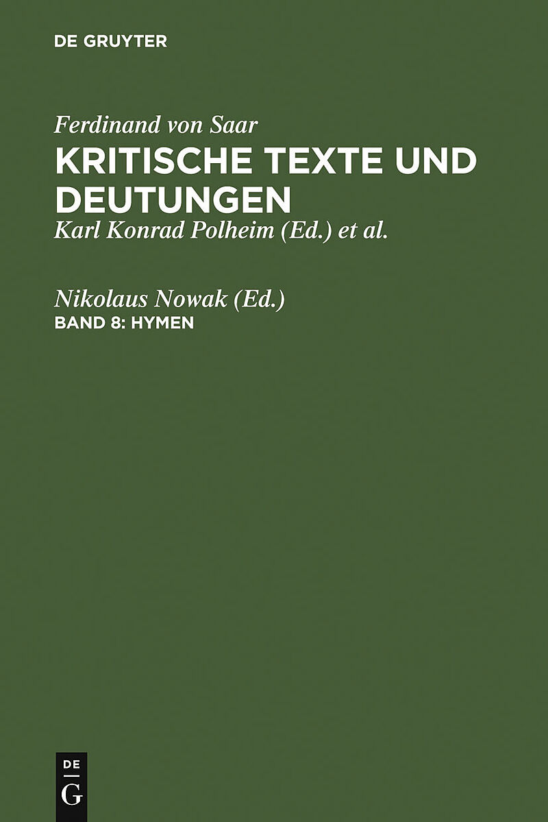 With "Hymen", the ongoing historical-critical edition of Ferdinand von Saar's works arrives at the output from the author's old age. Physically ailing and frequently assailed by bouts of resignation, the Viennese author (1833-1906) was preoccupied even at thi...