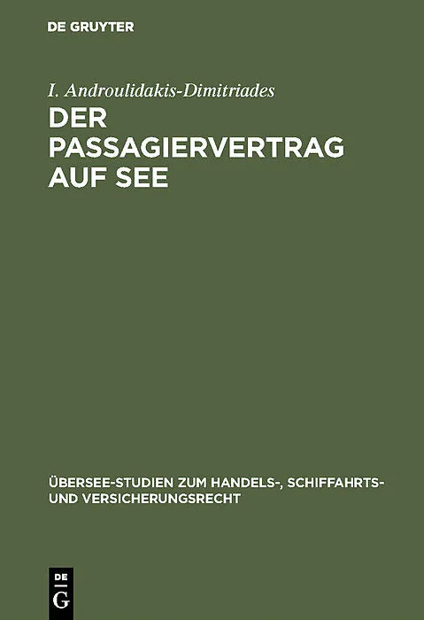 Frontmatter -- Vorwort -- INHALTSVERZEICHNIS -- Literaturverzeichnis -- Abkürzungsverzeichnis -- Einleitung -- Erster Abschnitt: Die heutige Regelung des Passagiervertrages nach deutschem, französischem, englischem und amerikanischem Recht -- Erstes Kapitel: D...