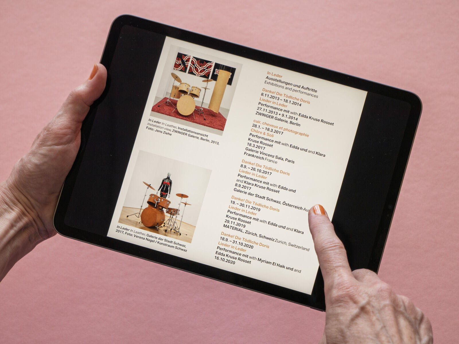 Die Publikation zeigt die Arbeit In Leder der Künstlerin Käthe Kruse. In Leder besteht aus 20 mit Leder bezogenen Instrumenten. Ausgangspunkt war das Schlagzeug, das Käthe Kruse in den 1980er Jahren in der ikonischen Band Die Tödliche Doris spielte und das sie...