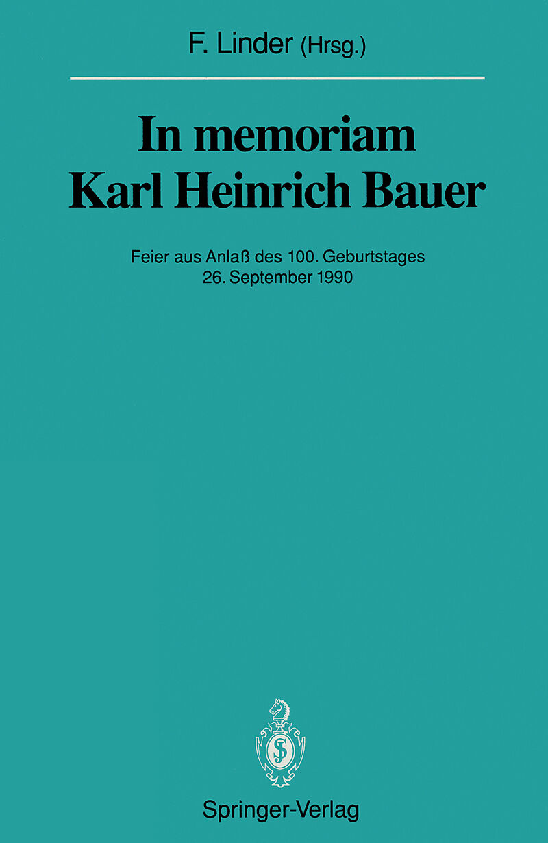 Inhalt Grußworte.- Rektor der Universität Heidelberg.- Vorsitzender des Vorstandes des Deutschen Krebsforschungszentrums.- Dekan der Medizinischen Fakultät I der Universität Heidelberg K.H. Bauer Werk und Wirkung ein rationaler Zugang.- Generalsekretär der Deu...