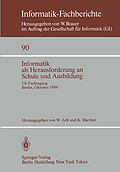 Informationstechnik und Bildung.- Bildung und Ausbildung für eine human computerisierte Gesellschaft.- Neue Medien Herausforderung an Bund und Länder.- Zukunftstendenzen der Informationsverarbeitung.- Informatik in Schule und Ausbildung im internationalen Vergleich.- Stand der Erfahrungen zur Informatik in Schule und Ausbildung.- Basislehrgang Informatik Bürgerinformatik für alle Schüler.- Ein Minimalprogramm 24 Lektionen Informatik für alle Schweizer Gymnasiasten und die entsprechende Lehrerausbildung.- Didaktik der Schulinformatik Didaktische Konzeption von Informatik-Unterricht und ihre Realisierung in den unterschiedlichen Bildungs- und Ausbildungsbereichen.- Zur Integration der Informatik in andere Schulfächer.- Die Wechselwirkungen zwischen Problemstellung, Programmiersprache und verwendeten Informatikmethoden am Beispiel der beiden Bundeswettbewerbe in Informatik.- Informatik in der Sekundarstufe I.- Grundbildung Informatik für jeden Schüler.- Didaktische Aspekte zur Vermittlung von Programmiersprachen.- Programmieren im Pflichtbereich der Sekundarstufe I?.- Durchführung einer Unterrichtseinheit: Kleine Texte formatieren.- Aufbau und Konzeption einer freiwilligen Informatik-AG an einer Hauptschule.- Informatik in der Realschule Bericht aus einer Kölner Arbeitsgruppe.- Informatik in der Sekundarstufe I Eine Überforderung für viele, eine gebotene Förderung für manche.- Informatik in der Sekundarstufe II.- Konzepte und Inhalte für einen Lehrplan Informatik in der gymnasialen Oberstufe.- Zur Didaktik der Datenstrukturen.- EDV-Ausbildung in kaufmännischen Berufen am Beispiel der Ausbildung von Industriekaufleuten.- Informationstechniken an kaufmännischen Schulen Eine curriculare und unterrichtsorganisatorischePlanskizze.- Praktische Erfahrungen mit EDV an kaufmännischen Berufsschulen in Österreich.- Informatik in anderen Unterrichtsbereichen.- Anwendungssoftware für den Fachunterricht.- Kriterien für Unterrichts-Software.- Programmideen für den naturwissenschaftlichen Unterricht.- Ist es überhaupt didaktisch sinnvoll und wünschenswert den Mikrocomputer im Physikunterricht einzusetzen?.- Der Einsatz von Computern im Chemieunterricht und -praktikum.- EDV im Technikunterricht der allgemeinbildenden Schule.- Der Mikrocomputer im englischen Anfangsunterricht.- Planspielsysteme.- Computereinsatz im Bemühen um Innere Differenzierung.- Informatik und Mathematik.- Veränderungen von Zielsetzungen des Analysisunterrichts im Computerzeitalter.- Informatik Herausforderung an den Mathematikunterricht und umgekehrt.- Vom Programmieren zum mathematischen Verallgemeinern.- Dynamische Labyrinthe Ein Einstieg in die Computerwelt.- Kognitive Strategien von Schülern beim Programmieren.- Informatik in Stochastik und Linearer Algebra.- Über die Menge der natürlichen Zahlen, die sich nicht als Summe paarweise verschiedener Kubikzahlen darstellen lassen.- Informatik in der Lehrerfort- und -weiterbildung.- Kontaktstudienangebot Informatische Grundkenntnisse für Lehrer.- Lehrerfortbildung Informatik in Bayern.- Fernstudium Informatik in Nordrhein-Westfalen.- Lehrerfort- und Weiterbildung im Bereich Informatik für Lehrer an berufsbildenden Schulen.- Informatik in der beruflichen Aus- und Fortbildung.- Datenverarbeitung in der technisch-gewerblichen und kaufmännischen Berufsausbildung bei IBM.- EDV als Bestandteil der Aus- und Weiterbildung in der Druckindustrie.- Informatik in der Weiterbildung von Journalisten.- Datenverarbeitung in der Ausbildung zum MedizinischenDokumentar.- Informationstechnik an VolkshochSchulen.- Computer-Literacy.- Der vollcomputerisierte Campus: Erste Erfahrungen.- Aktuelle Situation und historisch kultureller Hintergrund der Computer-Literacy und der Schulinformatik in Schweden der Computer als Werkzeug.- Allgemeinbildung im Umgang mit dem Computer Projekte und Ansätze in Baden-Württemberg.- Informatikunterricht Die Sambaschule der Nation?.- Plädoyer für und Warnung vor neuen Technologien in der Schule Zum Einfluß des technologischen Wandels auf die allgemeine und berufliche Bildung.- Empfehlungen zur Informatik in Schule und Ausbildung.- - Empfehlungen der Gesellschaft für Informatik (GI) e.V..- 1976: - Zielsetzungen und Inhalte des Informatikunterrichts.- 1979: - Empfehlungen zur Ausbildung, Fortbildung und Weiterbildung von Lehrkräften für das Lehramt Informatik für die Sekundarstufe I und II.- - Stellungnahme und Empfehlungen zum Volkshochschulzertifikat Informatik.- 1982: - Empfehlungen der Gesellschaft für Informatik e.V. 365 (GI) über 'Eine praktische Tätigkeit für Informatik-Studenten an Universitäten'.- - Lernziele des Informatikunterrichts an kaufmännischen Schulen.- 1984: - Neue Empfehlungen der Gesellschaft für Informatik für das Informatikstudium an Fachhochschulen (Auszug).- - Empfehlungen der GI in Arbeitsfassungen (1984).- - Entwurf einer Rahmenempfehlung für die Informatik im Unterricht der Sekundarstufe I.- - (Entwurf einer) Rahmenempfehlung für die Einbeziehung von Informatik-Inhalten in die berufliche Erstausbildung an gewerblich-technischen berufsbildenden Schulen, kurz: Informatik an gewerblich-technischen Schulen (Auszug).- - Arbeitspapier zum Entwurf neuer 'Empfehlungen zur Lehrerbildung im Bereich der Informatik' (Auszug).- - Entwurf:'Empfehlungen der Gesellschaft für Informatik für die Ausbildung von Diplom-Informatikern an wissenschaftlichen Hochschulen' (Auszug).- - Einheitliche Prüfungsanforderungen in der Abiturprüfung Informatik (KMK-Beschluß vom 23.2.1981, Auszug).- - Exemplarische Prüfungsordnungen zur.- - Verordnung über die Ersten (...) Staatsprüfungen für die Lehrämter (1. Lehrer PO 1982), Auszug: Informatik.- Gesetz- und Verordnungsblatt für Berlin, 38. Jg, Nr.48, vom 28.9.1982 (Auszüge).- - Verordnung über die ergänzenden Staatsprüfungen für Lehrämter (ESPO), Auszug: Informatik.- Gesetz- und Verordnungsblatt für Berlin, 40. Jg, Nr.14, vom 6.3.1984 (Auszüge).- Verzeichnisse.- - Mit
