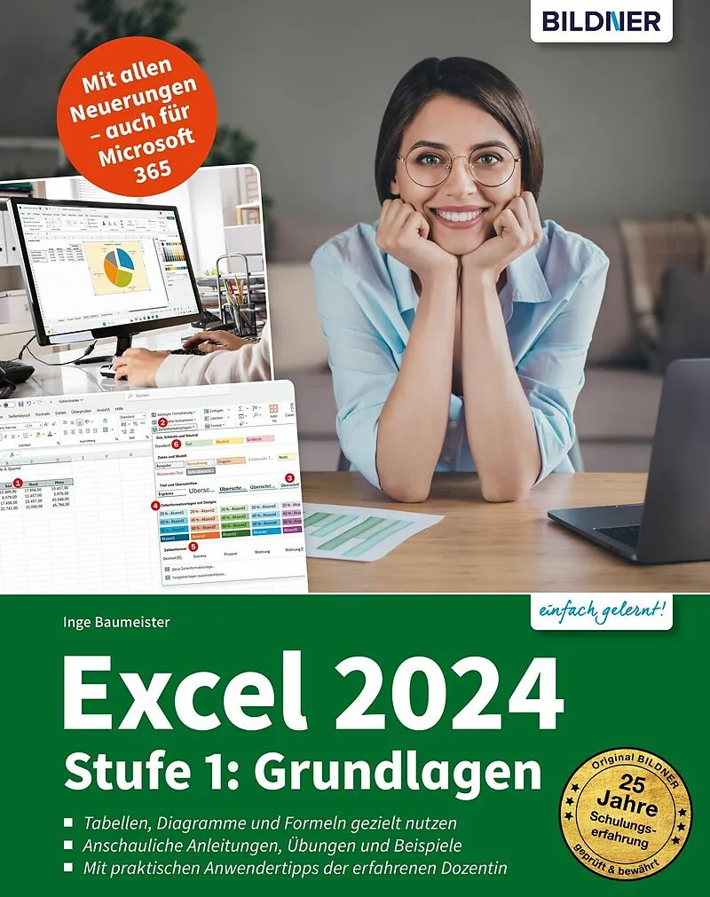 - Tabellen, Diagramme und Formeln gezielt nutzen - Anschauliche Anleitungen, Übungen und Beispiele - Mit praktischen Anwendertipps der erfahrenen DozentinErlernen Sie den sicheren Umgang mit Excel 2024 und profitieren Sie davon im Beruf, im Studium oder im Al...