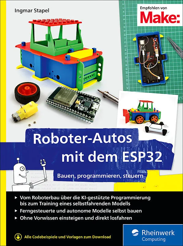 Der Traum vom selbstfahrenden AutoWer braucht schon einen Telsa, wenn man sein eigenes E-Auto bauen kann?Dein Flitzer wird zwar ein bisschen kleiner als ein richtiges Auto werden, dafür kannst du ihn selbst bauen, programmieren und steuern. Ingmar Stapel zeigt...Der Traum vom selbstfahrenden AutoWer braucht schon einen Telsa, wenn man sein eigenes E-Auto bauen kann?Dein Flitzer wird zwar ein bisschen kleiner als ein richtiges Auto werden, dafür kannst du ihn selbst bauen, programmieren und steuern. Ingmar Stapel zeigt dir, welche Werkzeuge und Teile du brauchst und wie sie zusammenpassen. Für die Programmierung gibt es ausführliche Codebeispiele und die Unterstützung eines KI-Helfers. Und zum krönenden Abschluss bringst du deinem Auto bei, selbstständig durch die Wohnung zu fahren.Ohne Vorwissen einsteigen und direkt losfahrenVom Roboterbau über die KI-gestützte Programmierung bis zum Training eines selbstfahrenden ModellsFerngesteuerte und autonome Modelle selbst bauen Aus dem Inhalt:Werkzeuge und TeileDas Chassis aus dem 3D-DruckAntrieb, Akku und Verkablung: die Energie für dein AutoDas Gehirn: das ESP32 Dev KitSchritt für Schritt: die Montage des AutosProgrammierung mit KI: richtiges Prompting, ohne den Überblick zu verlierenSteuerung programmieren: umfassende Codebeispiele, die zeigen, wie's gehtSensoren auslesen, Spuren folgen und immer im Gleichgewicht bleibenAutonom fahren mit Ultraschallsensor und GPS-ModulDein Auto wird smart: das OpenBot-FrameworkDaten sammeln und KI trainieren