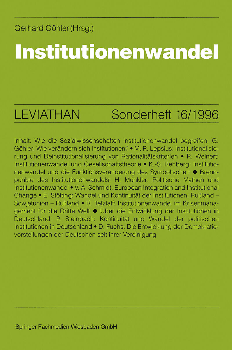 Institutionenwandel ist uns seit dem Umbrüchen in Mittel-, Ost-und Südosteuropa ein vertrautes Phänomen geworden, das wir mit Anteilnahme, Hoffnung und Sorge verfolgen. In der Wissenschaft ist der große Zweig der Transformationsfor schung entstanden, der de...