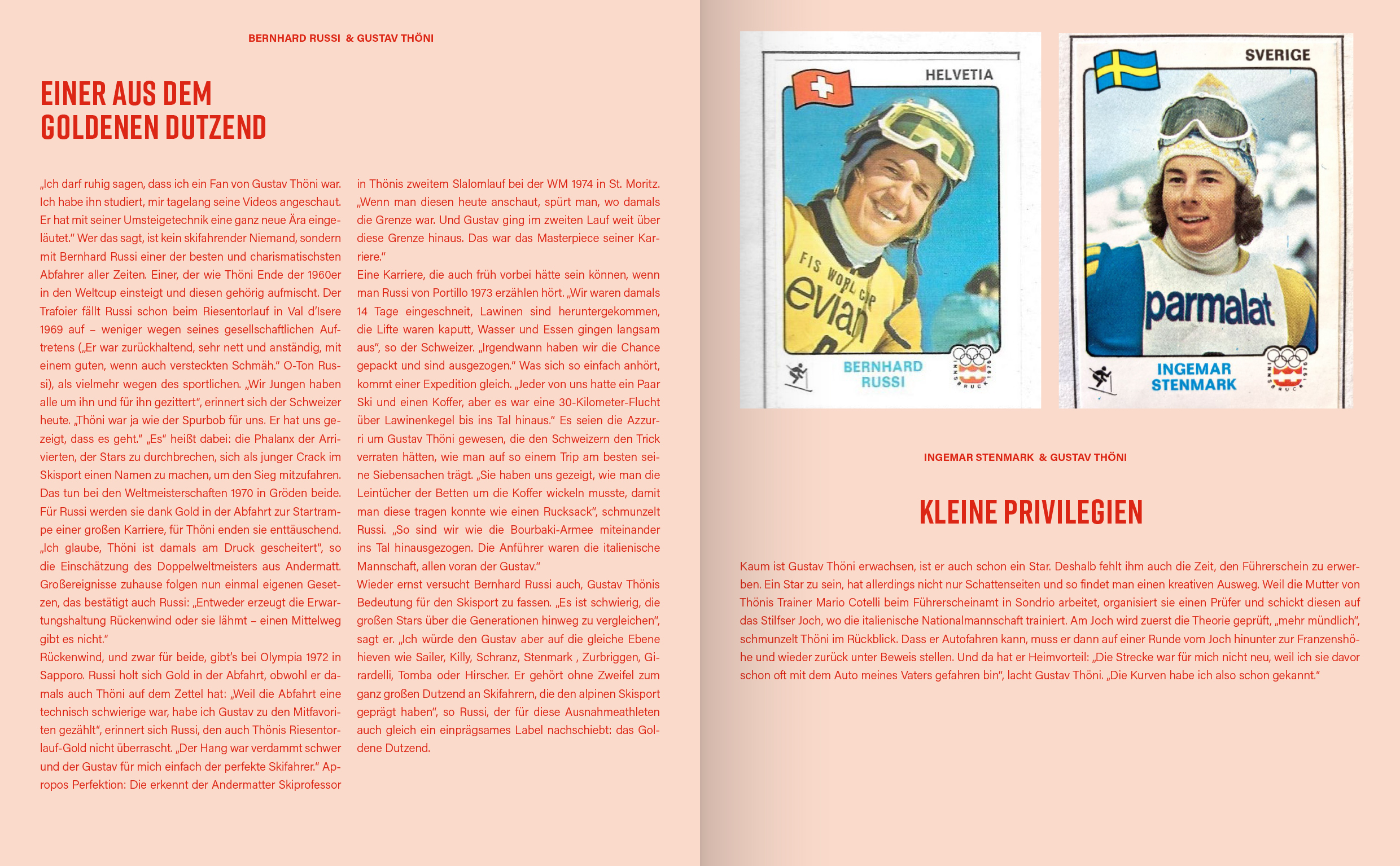 Wer die 1970er-Jahre in Südtirol erlebt hat, verbindet damit in den allermeisten Fällen auch persönliche Erlebnisse mit Gustav Thöni. Wer war bei der Heim-WM 1970 in Gröden dabei? Wer hat Thönis Olympiasieg 1972 in Sapporo schon im Farbfernsehen verfolgt? Wer ...