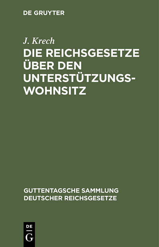 Dieser Titel, "Die Reichsgesetze über den Unterstützungswohnsitz", ist eine wissenschaftliche Publikation, erschienen bei De Gruyter Brill. Ausführliche Beschreibung, Inhaltsverzeichnis und weitere Angaben finden Sie auf der Verlagswebsite: https://www.degruyt...