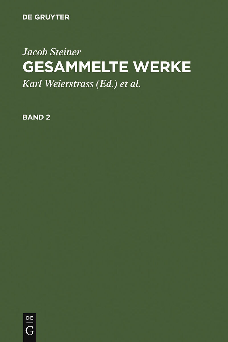 Keine ausführliche Beschreibung für "JACOB STEINER: GESAMMELTE WERKE BD 2 E-BOOK" verfügbar. Inhalt Frontmatter -- Vorrede. -- Inhaltsverzeichniss des zweiten Bandes. -- Démonstration géométrique (d'un théoréme relatif à l'attraction d'une couche ellipsoïdiqu...