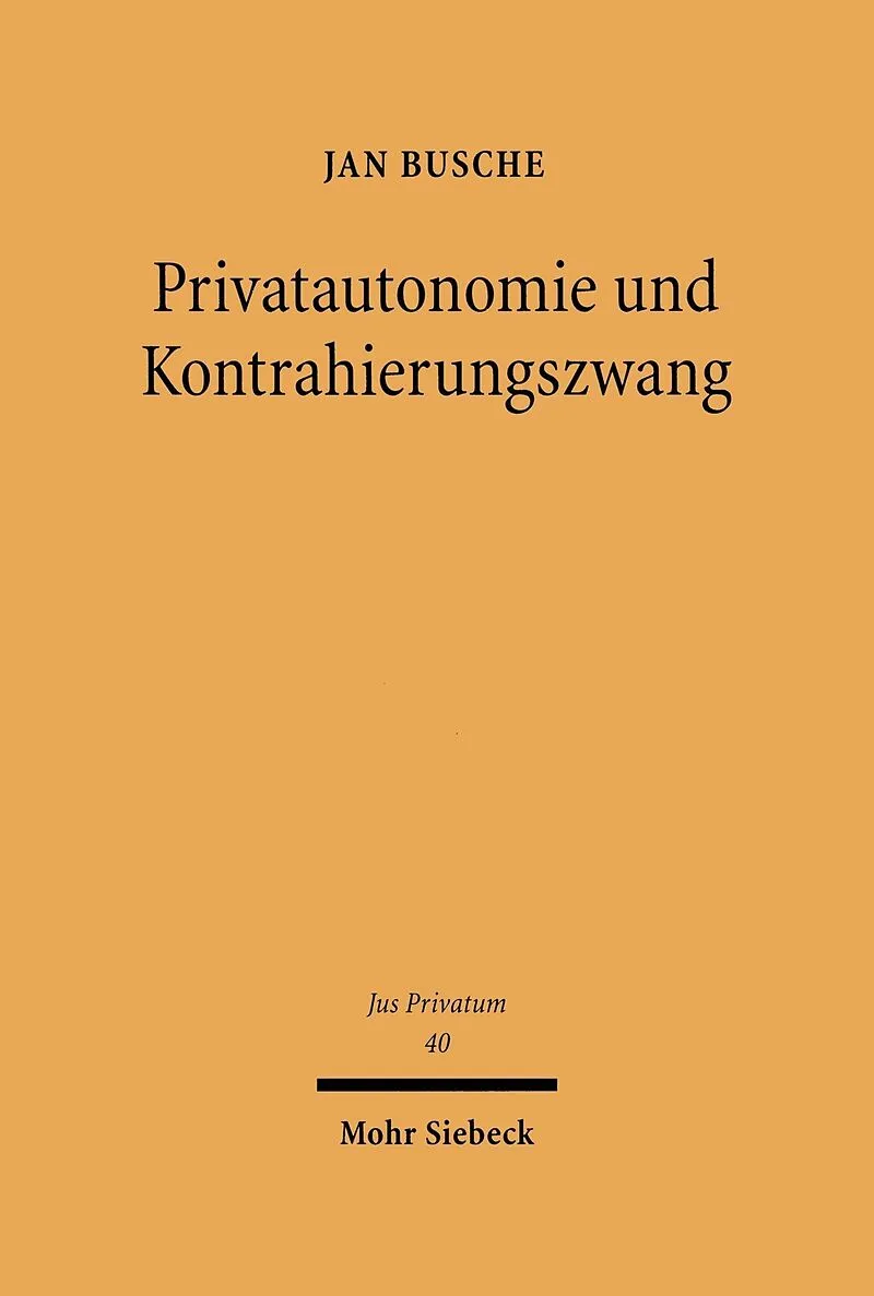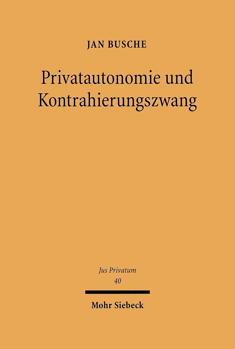 Jan Busche describes the significance of the obligation to contract in modern private law. He theorizes that the real basis of individual self-determination, which is the economic and intellectual faculty of self-determination by the individual, has been disru...