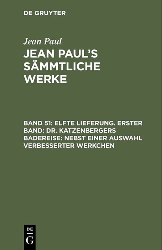 Keine ausführliche Beschreibung für "Elfte Lieferung. Erster Band: Dr. Katzenbergers Badereise; nebst einer Auswahl verbesserter Werkchen" verfügbar. Zusammenfassung Frontmatter -- Inhalt des ersten Bändchens -- Vorrede zum ersten und zweiten Bändchen -er ers...